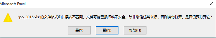用EXCEL文件函数xls_create_book及xls_save函数操作生成及保存的excel文件,用excel软件打开提示:如下图: