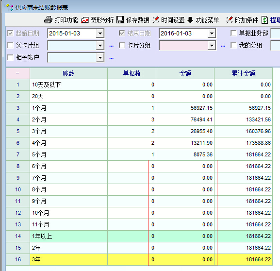 如图:图片B是供应商待续单据明细,图片A是待结账龄。