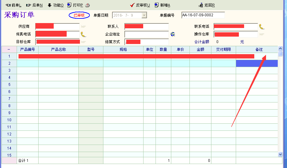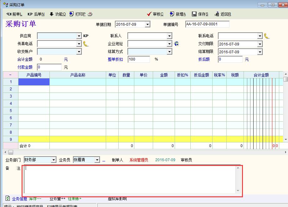 单据未审核时输入的字