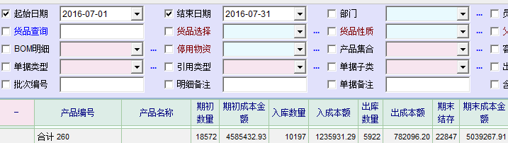 我7月的出入库做完以后,汇总报表中得到7月1日到7月31日  其中7月31日的期末库存余额是5039267.91
