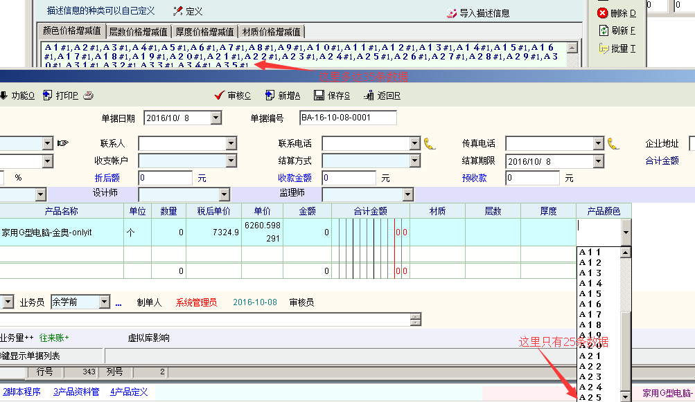 使用grid_set_col_picklist设置下拉模式有最大的条数限制,例如数据多达30条时只能显示前面的25条(有的电脑只有20条)。附图: