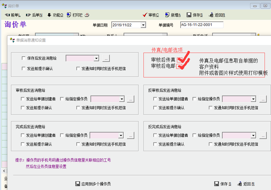 相关信息取自单据的客户资料,总共在三个界面丰富这个功能: