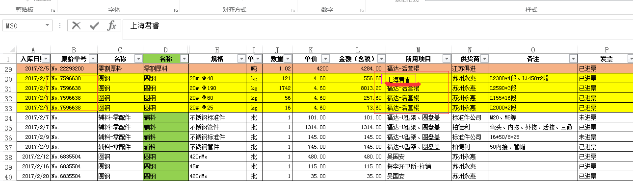 为了方便统计项目所涉及的物品数量(入库单,采购单等)建议在单据明细中插入相关项目