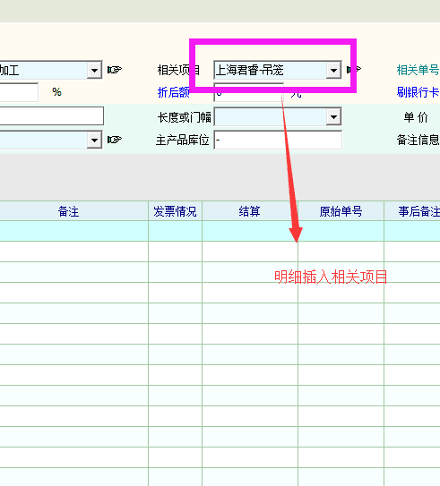 单据明细增加相关项目