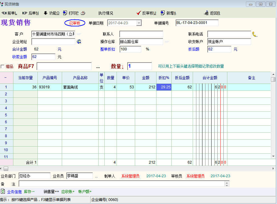 现货销售单