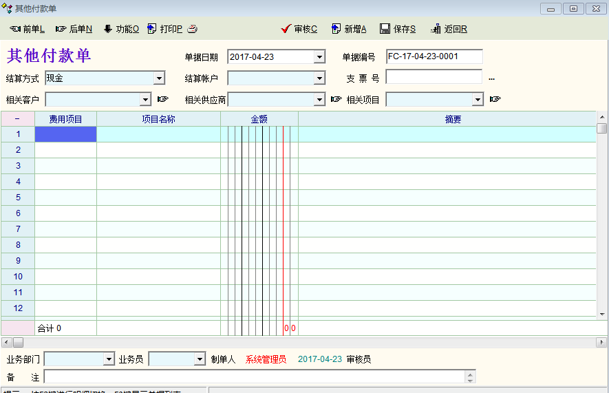 明细列表定义里有“费用一”、“费用二”,是针对单项产品的,我需要的是针对此现货销售所产生的销售费用或者物流费用或者安装费用或者佣金等,要能反应到现金流水帐里。