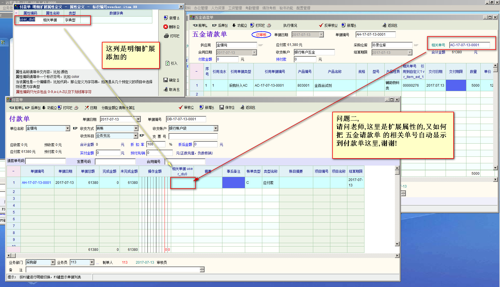 求助_求助一下大神,如何在付款单或其它单据上根据引用的上级单据添加控件到单据明细显示,谢_产供销