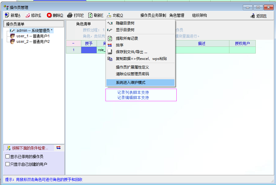 操作员管理功能添加: