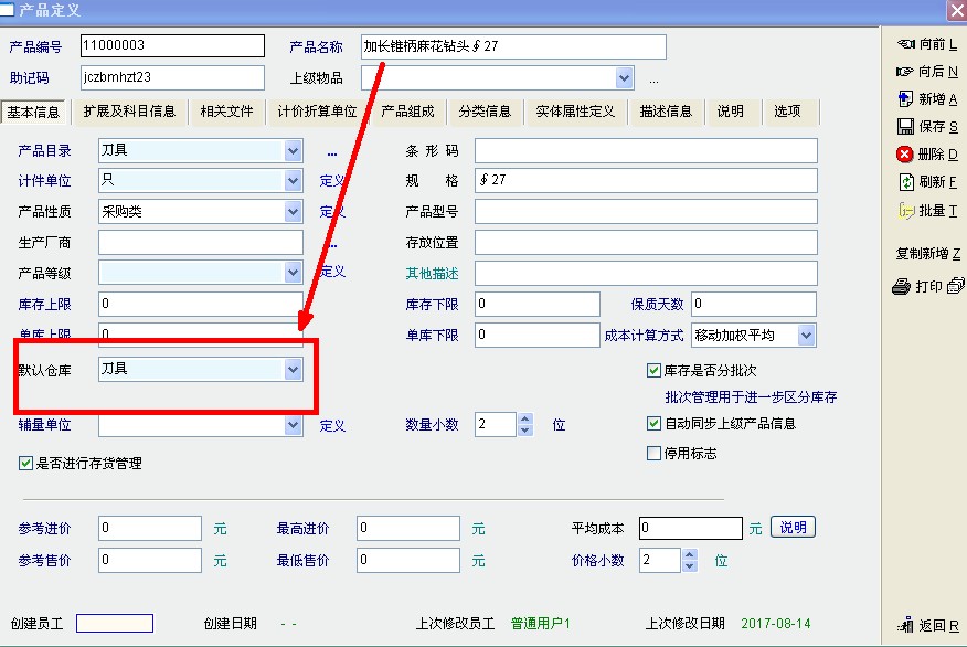 求助_需求:库存单据在输入产品名称时,对应的默认仓库能够直接跳转显示_产供销