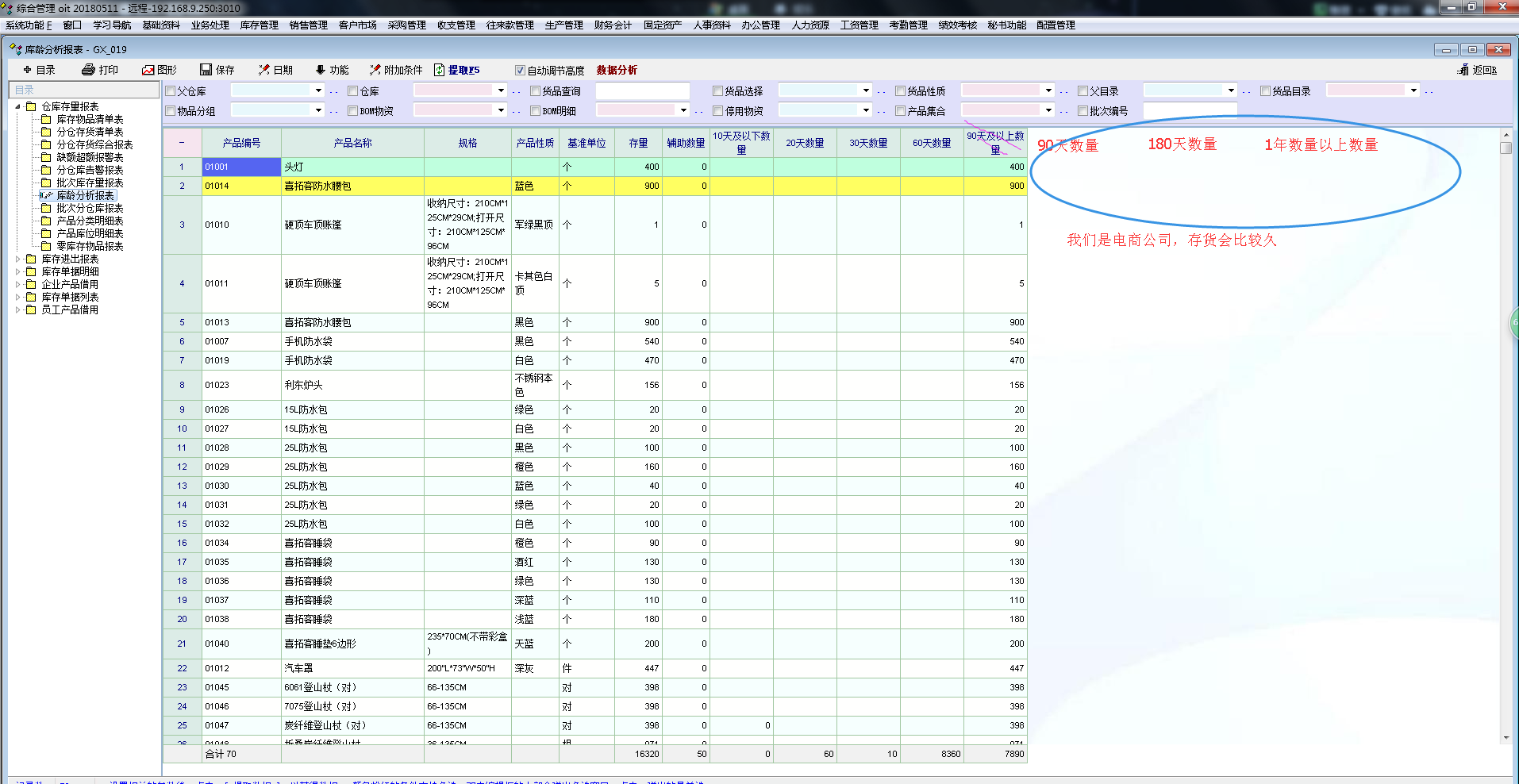库龄分析目前最长显示90天以上,希望能增加90天   180天  及1年以上,方便我们关注重点产品