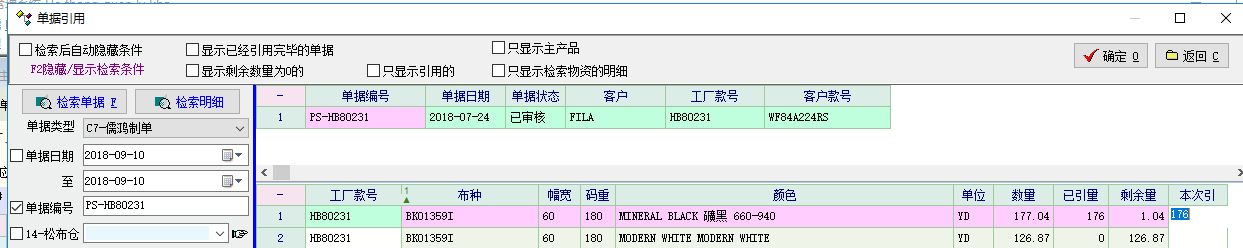 孟老师, 服装行业启用行业属性1,2.3.在实际操作中发现引用上级单据明细后, 在单据引用界面显示的已引用数量是没有对应行业属性1(颜色)的, 例如我8月24日的单据引用行业属性1(颜色)MODERN WHITE :176YD,在8月31日的单据引用界面显示的已引用数量是行业属性1(颜色):MINERAL BLACK 礦黑 660-940:176YD, 这个问题希望老师能帮忙解决,谢谢!
