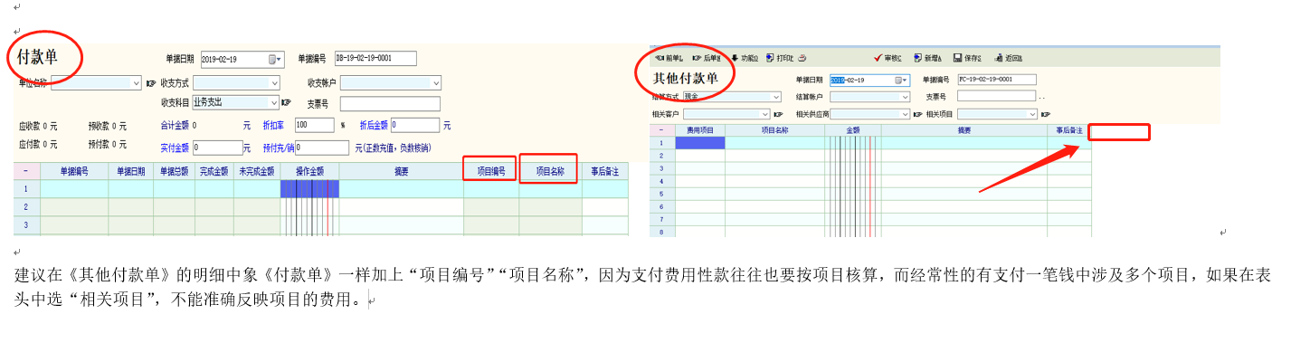 讨论_建议在《其他付款单》明细增加“项目”等辅助核算项_产供销