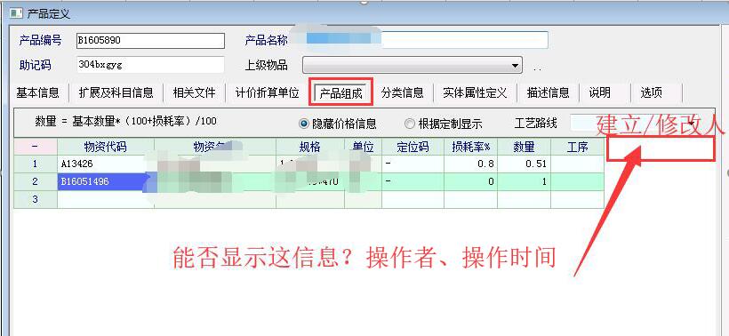 »BOM组成能否增加操作人与时间,方便跟踪