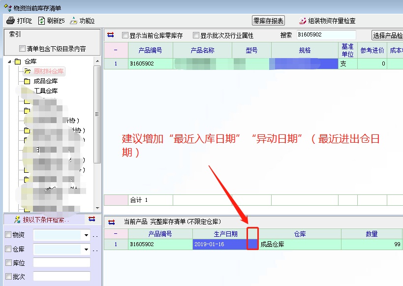 帮忙增加“最近入库日期”“异动日期”(最近进出仓日期),这两个信息也是常用项